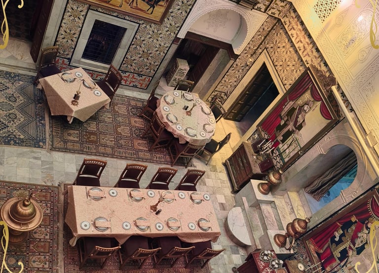 Plongez dans une expérience culinaire unique au cœur de Tunis, alliant haute cuisine et cadre historique, avec des espaces dédiés à l'art et à l'artisanat.